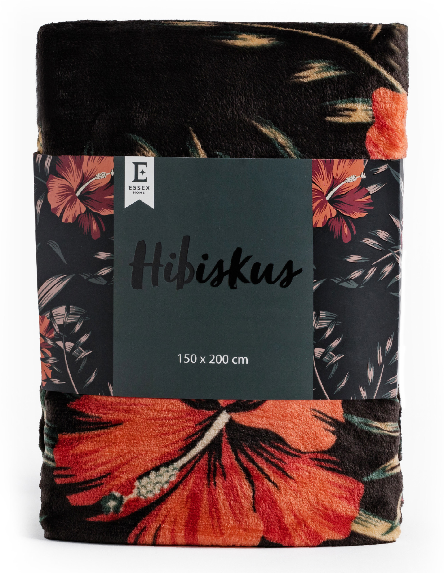 Deka z mikrovlákna HIBISKUS černá/červená 150x200 cm Essex