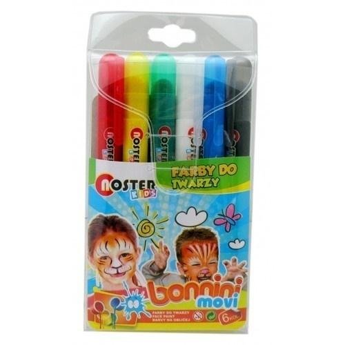 Wysokiej jakości farby do twarzy w formie mazaka, wykręcane 6 intensywnych kolorów Do charakteryzacji twarzy. Zmywalne za pomocą mydła. przeczytaj całość
