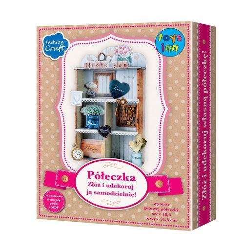 Zestaw do złożenia półeczki zawiera: elementy z płyty MDF gotowe do złożenia, papier ozdobny - 2 arkusze A5, perełki samoprzylepne - 18 szt., papier ozdobny Decopatch - 2 arkusze, koronkę, klej oraz instrukcję. przeczytaj całość