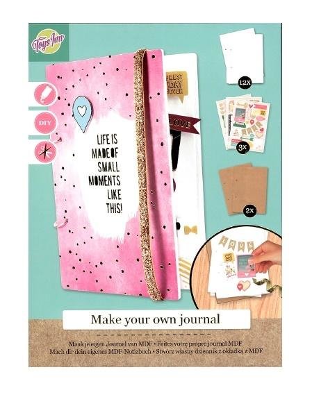 Ten dziennik z okładką z płyty MDF daje duże pole do wykazania twórczych umiejętności. Możesz pomalować przód i tył na biało i okleić je dołączonymi papierowymi elementami. Albo pomaluj zewnętrzną stronę według własnych upodobań. Połącz białe arkusze z zewnętrzną płytą MDF poprzez przełożenie metalowych kółek przez dziurki i użyj brokatowej tasiemki, żeby zamknąć album. Wiek 6+