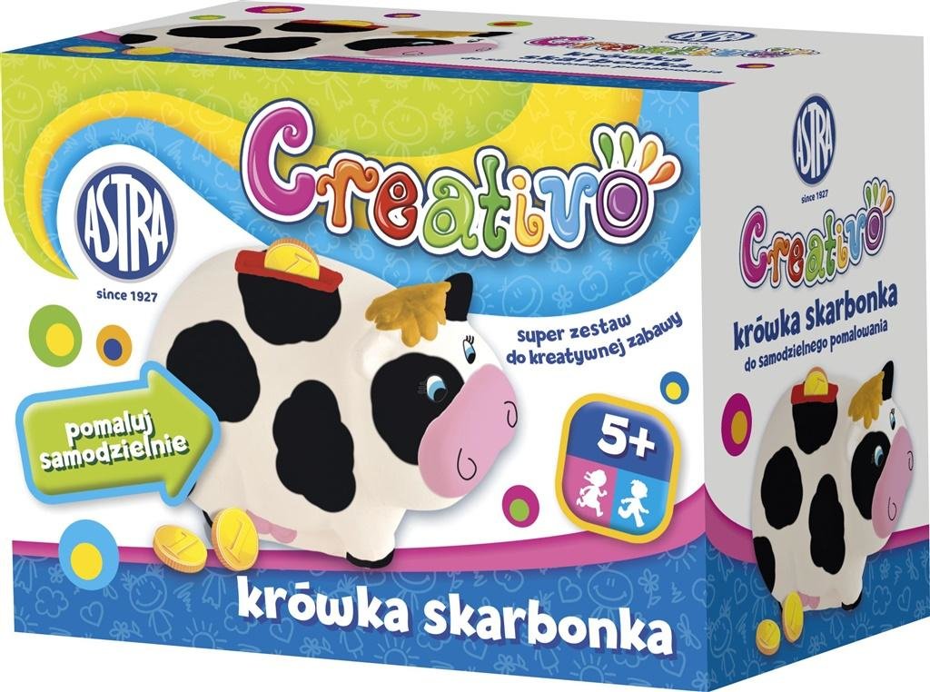 Zestaw Skarbonka malowanka Krówka zawiera: - 6 kolorów farby akrylowej 3 ml - plastikowy pędzelek - gipsowa skarbonka w kształcie Krówki Creativo jest to seria produktów służąca do rozwoju kreatywnego myślenia i zdolności manualnych dzieci. Zestawy Creativo to szereg produktów o różnym stopniu...