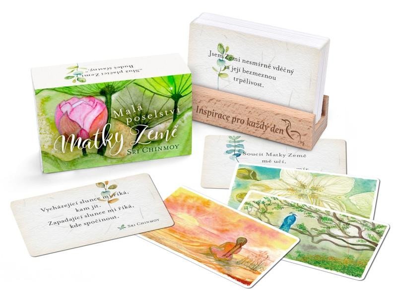 Příroda nás může naučit mnohému – pokud jí to dovolíme. Učí nás trpělivosti, toleranci, lásce, pokoře, sebedávání. A především harmonii a jednotě. Tato série 55 inspirujících aforismů z pera Sri Chinmoye s krásnými ilustracemi Shatadal Pötzsch nám přináší moudrost, krásu a dotek všeobjímajícího srdce Matky Země. S dřevěným gravírovaným stojánkem na vystavení kartiček.
