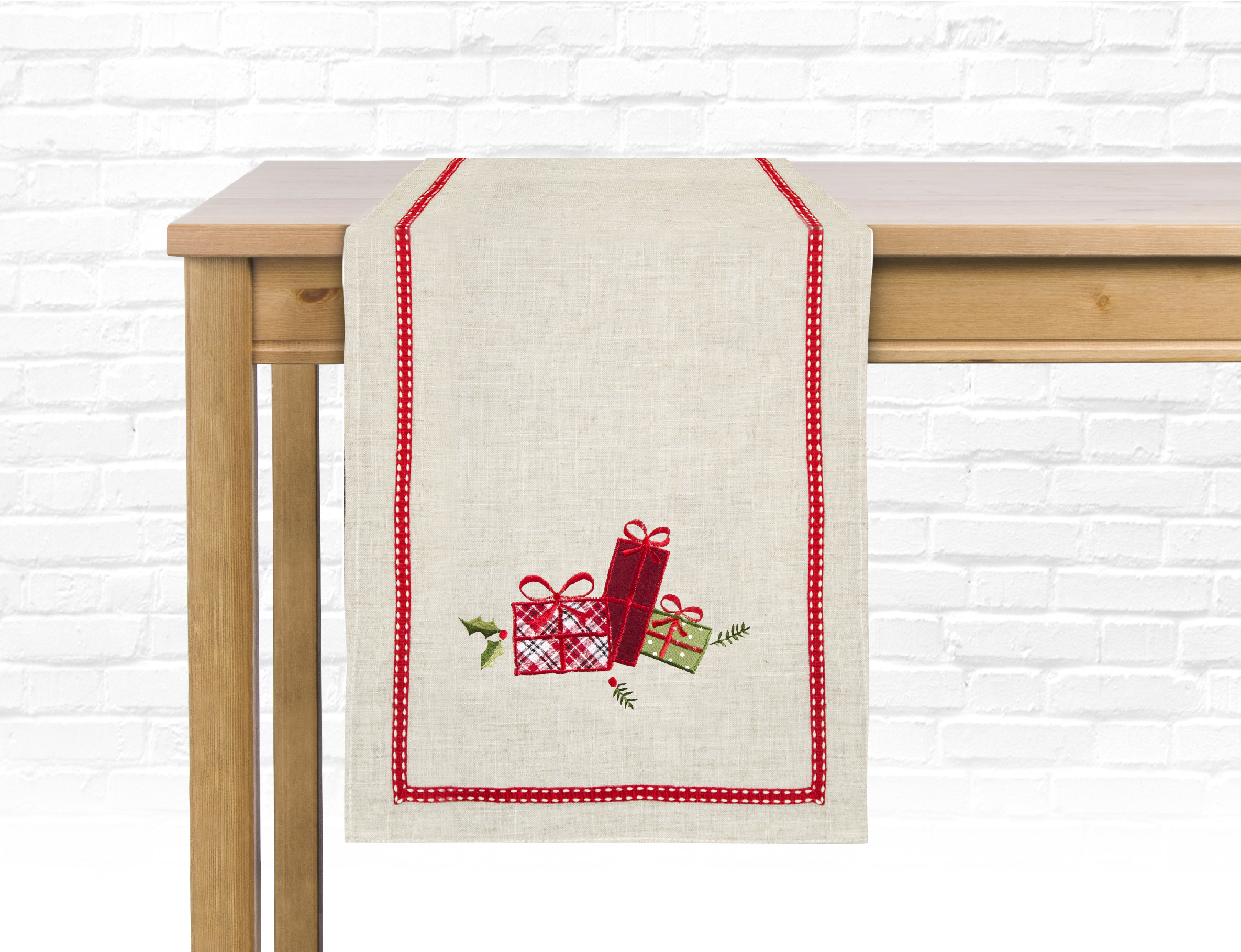 Vánoční ubrus - běhoun na stůl BOXING DAY - motiv dárečky 35x180 cm, ESSEX