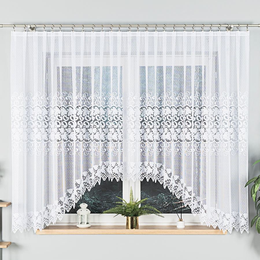Kvalitní krátká oblouková hotová dekorační záclona v moderním trendovém provedení do kuchyně nebo obývacího pokoje. Záclona je připravena na zavěšení na žabky. 1 kus v balení.Rozměr : 1x 410x160 cm - šířka 410 cm, výška 160 cm - doporučujeme garnyž od 200 do 270 cm przeczytaj całość