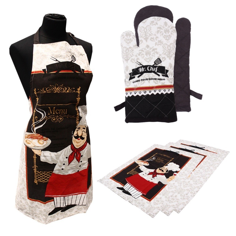 HOME ELEMENTS Set Kuchař, zástěra, chňapka s magnetem, dvě utěrky