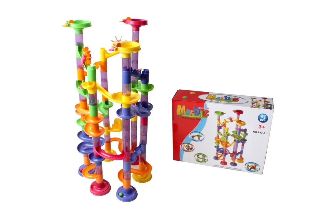 Zábavná plastová stavebnice pro děti od 3 let. Postavte kuličkovoudráhu pro kuličku a sledujte jak se kuličky kutálejí. Užijete si při tomspoustu zábavy.Stavebnice obsahuje 91 různých úseků dráhy. przeczytaj całość