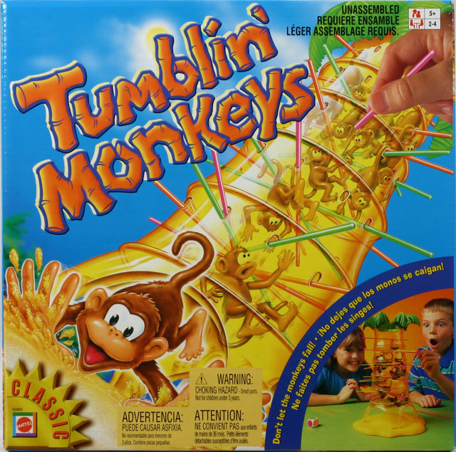 Jedinečná zručnostní hra Padající opičky lehce připomíná klasickou hru Mikádo. Úkolem je odebírat tyčky tak, aby opičky nepropadávaly. Nejprve si postavíte strom, nastrkáte tyčky libovoně do předem připravených otvorů a spustíte opičky do útrob stromu. Ty se zachytí svými ocásky za připravené...