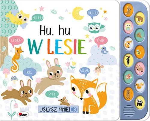 Książeczka sensoryczna – zawiera ELEMENTY DŹWIĘKOWE. Wspiera wszechstronny rozwój dziecka – pobudza ZMYSŁY WZROKU, DOTYKU I SŁUCHU. Prezentuje 12 DŹWIĘKÓW, które można spotkać w lesie. Zawiera krótkie teksty i urocze ilustracje.Książka zabiera małych czytelników DO LASU. Dzieci znajdą w niej...