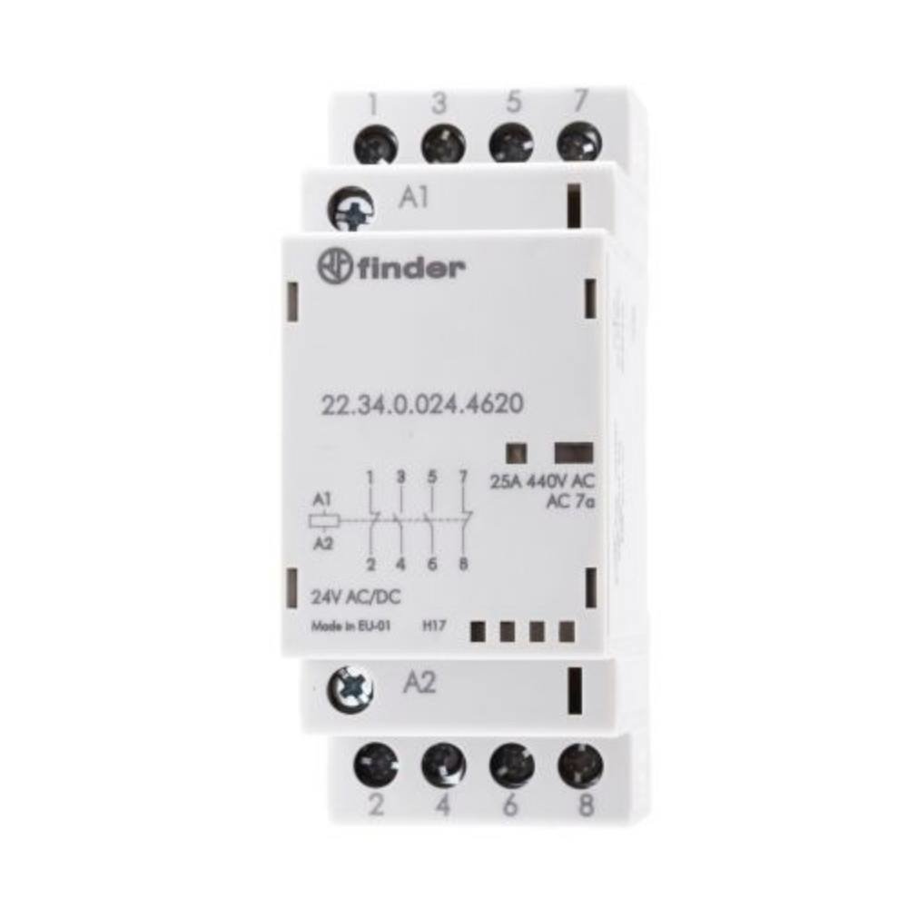 Modulový stykač na DIN lištu, 24V AC/DC, 4-pólový, 2-spínací, 2-rozpínacíModulový stykač je určen pro spínání elektrických obvodů, zejména odporových zátěží,třífázových asynchronních motorů atd.Technické parametry:Jmenovité napětí cívky 24V AC; 24V DCKonfigurace kontaktů: 2-spínací,2-rozpínací;...