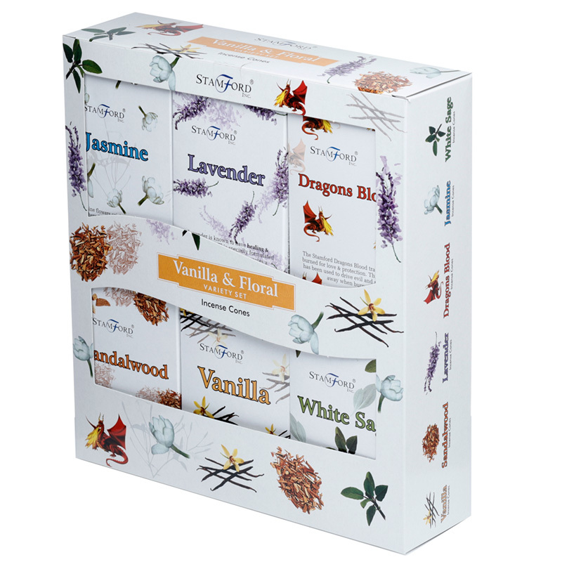 Sada 12 různých balení vonných kuželů Stamford 37354 - Vanilka a Květinové