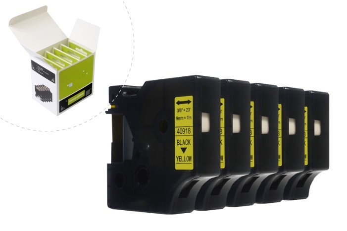 Ribbon JetWorld Replacement Dymo D1 Black on Yellow 9mm x 7m (5pcs) LM100 , LM120, LM150, LM160, LM200, LM210, LM210D, LM220, LM260, LM260P, LM260D, LM280, LM300, LM350, LM360D, LM420P, LM500TS (40918) (S0720730)