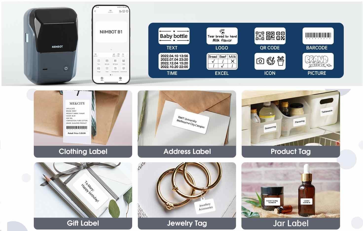 Niimbot Tiskárna štítků B1 Smart, grey + role štítků 210ks