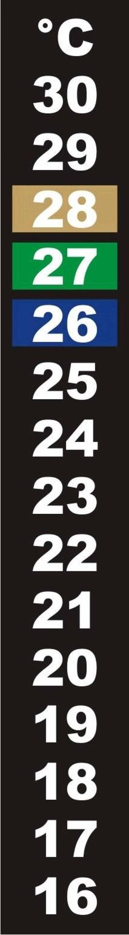 Termometr z ciekłych kryształów (samoprzylepny) wskazuje temperaturę powierzchni, do której jest przyklejony.