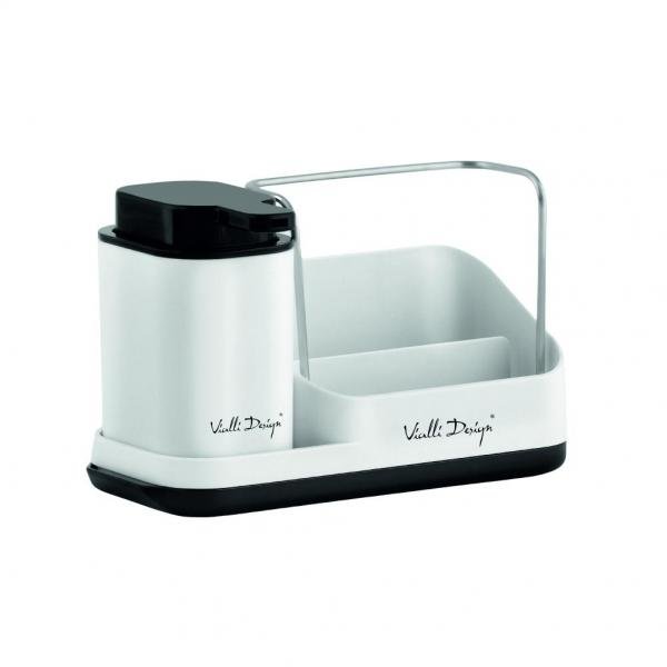Vialli Design Kuchyňský organizér s dávkovačem na čistící prostředek, bílý, LIVIO DUO 8302