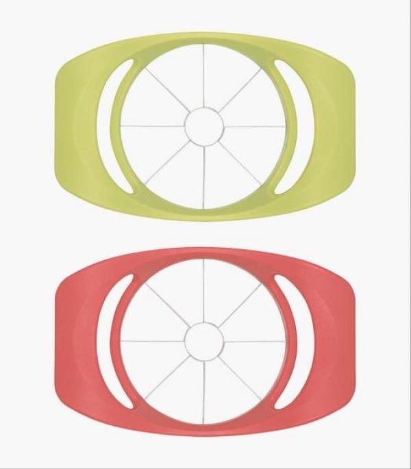 Ruční kráječ na jablka. Snadné a velmi rychlé rozkrojení jablíčka na 8 rovnoměrných dílů, a tak se rychle a vcelku zbavíte jádřince.Kombinace plastu a nerezové oceli, D 10,5 cm.Barevné provedení: zelená, starorůžová przeczytaj całość