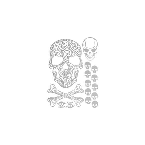 Samolepka na textil, zažehlovací, motiv TETE de MORT-lebky, stříbrná