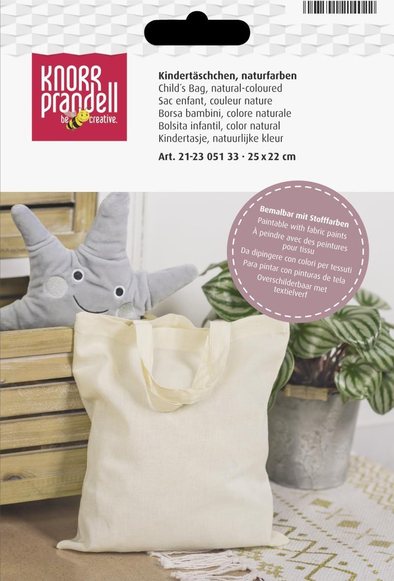 Naturalna mała dziecięca torba odpowiednia do dalszego kreatywnego tworzenia według Twojej wyobraźni. Torbę możesz dalej dekorować za pomocą farb lub markerów do tkanin. Wymiary ok. 25x22 cm. Materiał: 100% bawełna. Gramatura 140 g/m2. Można prać w temperaturze 30 °C. przeczytaj całość