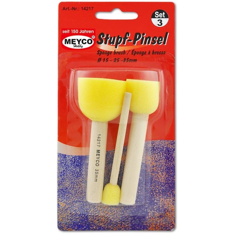 Gąbki do stemplowania z drewnianym uchwytem - zestaw zawiera 3 różne rozmiary (15, 25, 30 mm). przeczytaj całość
