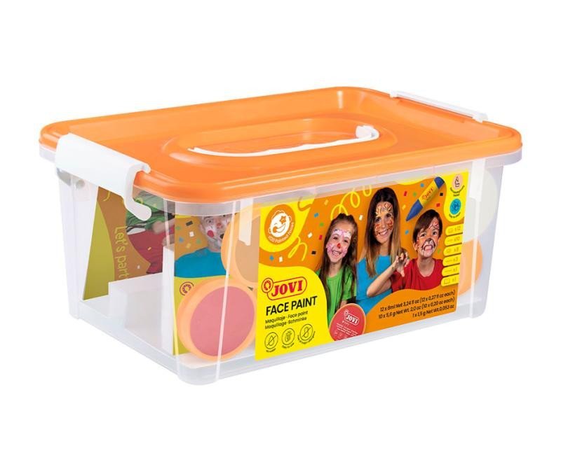 JOVI školní sada barvy na obličej obsahuje: 12 x 8 ml barvy na obličej + /art.176/ malovátka na obličej 10 x 5,6 g + 3 ks štětců + 8 ks houbičky na obličej + 1 ks konturovací pero + návody. Barvy slouží k líčení pleti. Snadno odstraníte pomocí vody, mýdla nebo mlékem na odlíčení. Dermatologicky... przeczytaj całość