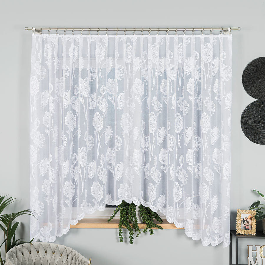 Kvalitní dlouhá oblouková hotová dekorační záclona v moderním trendovém provedení do kuchyně nebo obývacího pokoje o rozměru 350x180 cm. Záclona je připravena na zavěšení na žabky. 1 kus v balení.Rozměr : 1x 350x180 cm - šířka 350 cm, výška 180 cm - doporučujeme garnyž od 150 do 200 cm przeczytaj całość