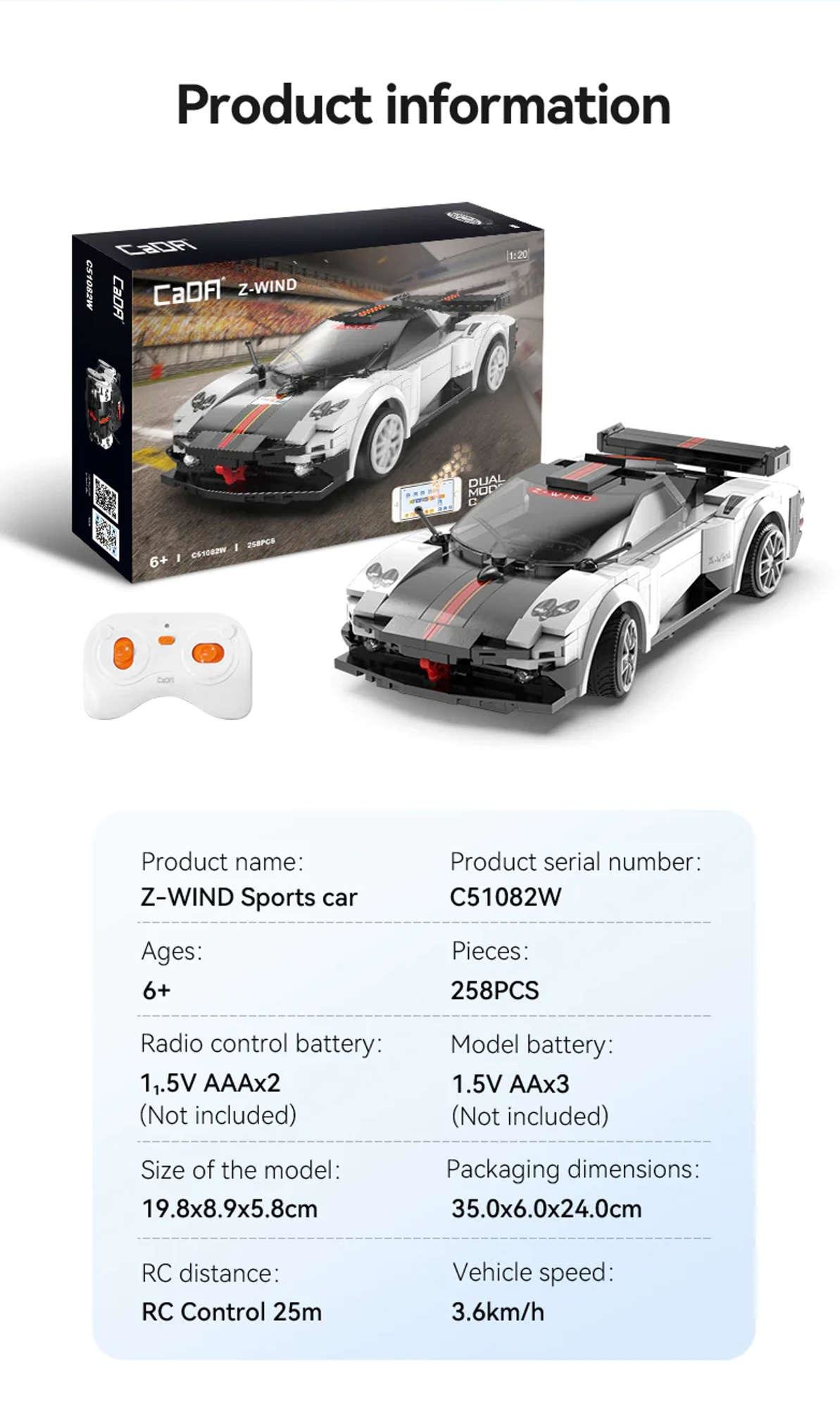 Klocki CADA.Zdalnie sterowane Auto sportowe Z-Wind Białe Autko wyścigowe Samochód Sports Car 258 el.