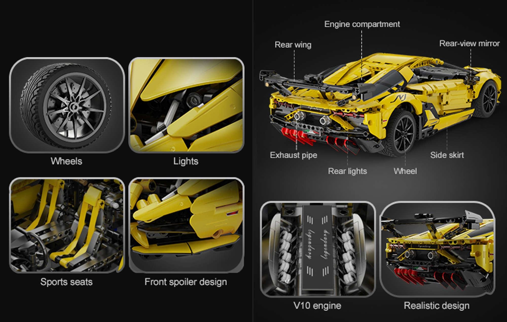 Klocki CADA Duże auto sportowe LP700 49 cm Samochód żółty Pojazd LP700 Sports Car 1805 elementów