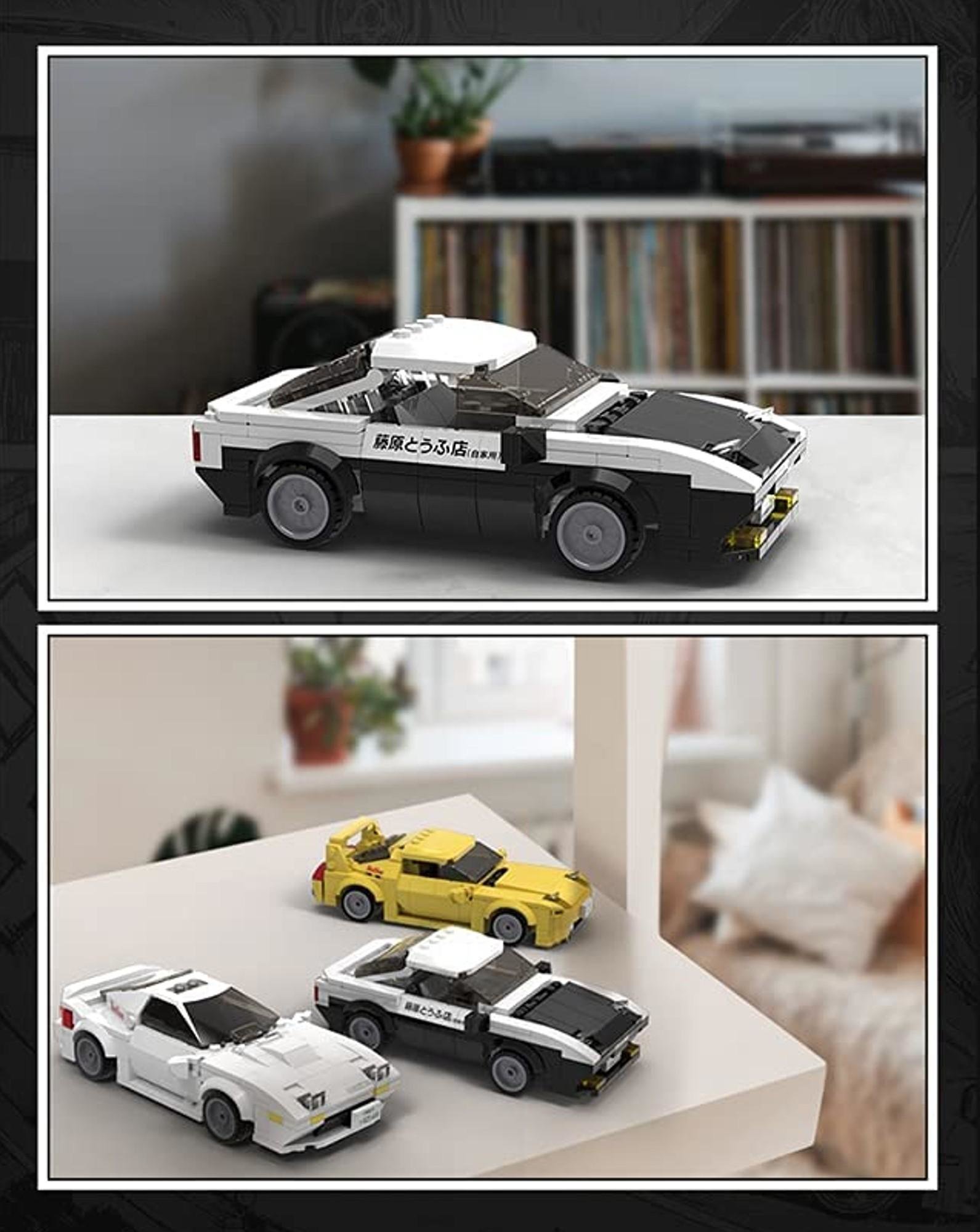 Klocki CADA. Samochód wyścigowy Auto Toyota AE86 Trueno Initial D Czarno-białe autko z klocków.