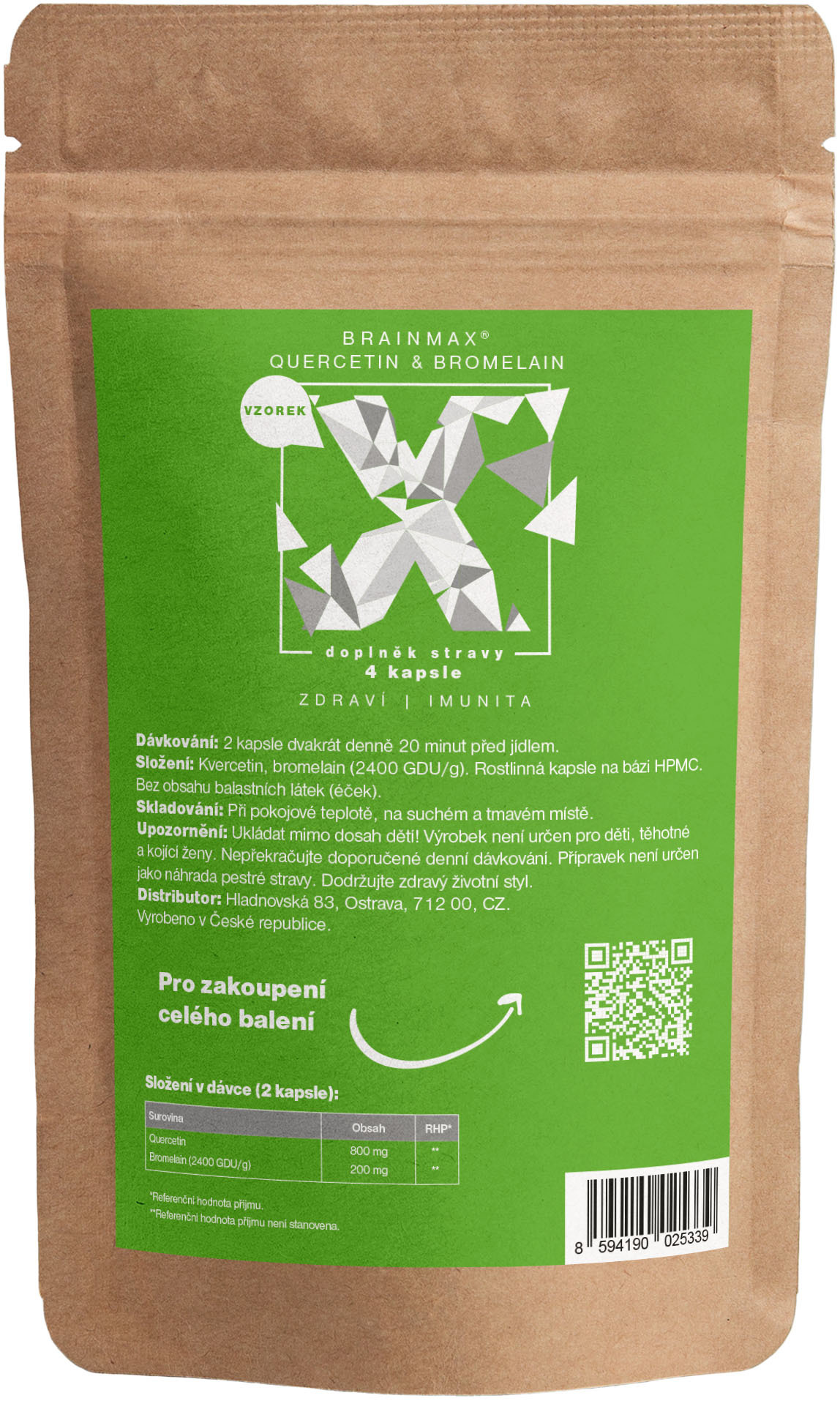 BrainMax Quercetin & Bromelain, Kvercetin a Bromelain, 4 rostlinné kapsle