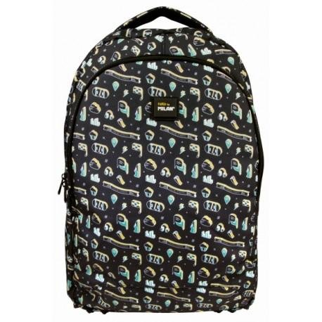 Plecak młodzieżowy z kolekcji ICONS w kolorze czarnym z nadrukiem. 2 przegrody zapinane na suwak, ochronna przegroda na laptop i mała łatwo dostępna kieszeń wewnętrzna. Regulowane miękkie szelki. Górny uchwyt do zawieszenia. Wyściełane i oddychające plecy. Wzmocniona podstawa. Można założyć na...