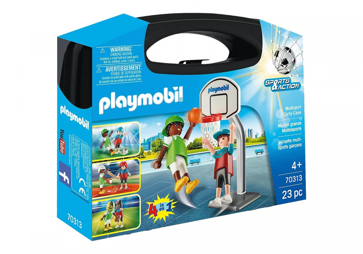 Skrzyneczka Multisport 4 w 1Zestaw zawiera 23 elemnty w tym dwóch graczy z akcesoriami do rozegrania rozgrywki w: koszykówkę baseball futbol amerykański piłkę nożną przeczytaj całość
