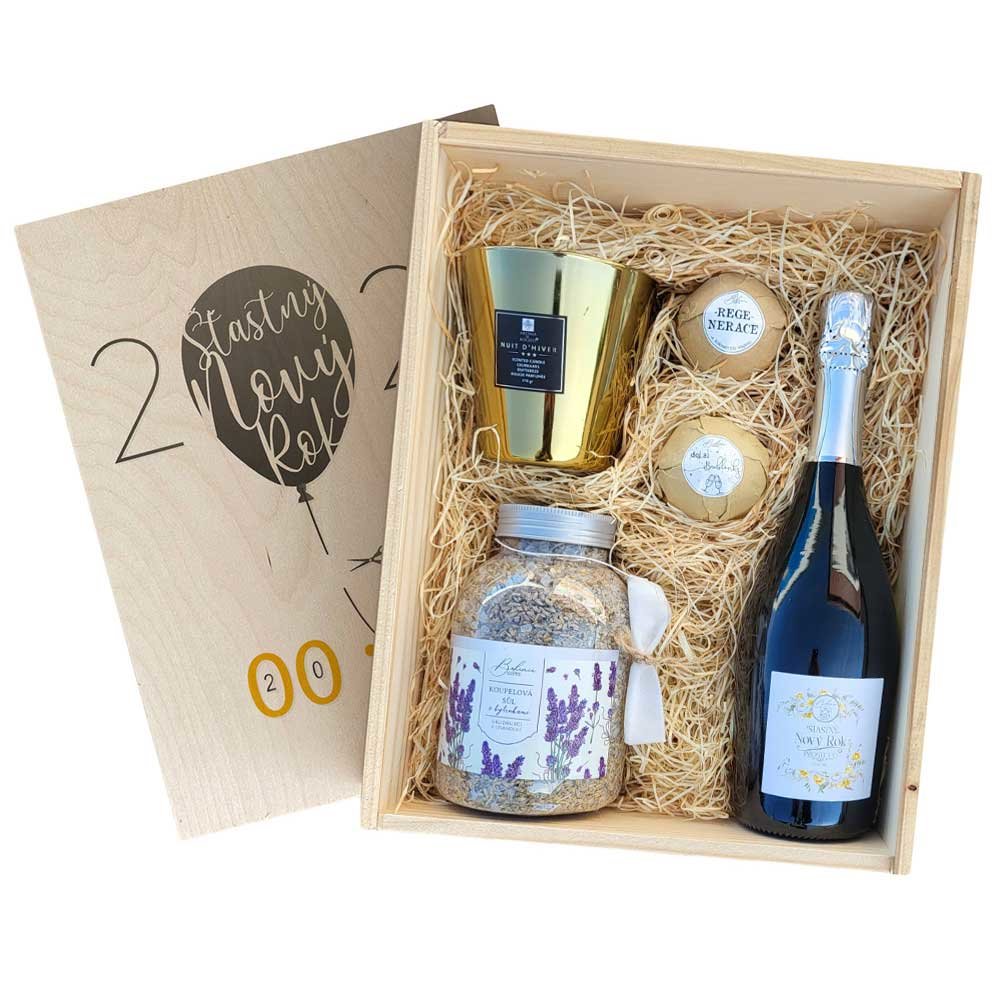 Novoroční dárková dřevěná bedna PF 2024 s prosecco XXL