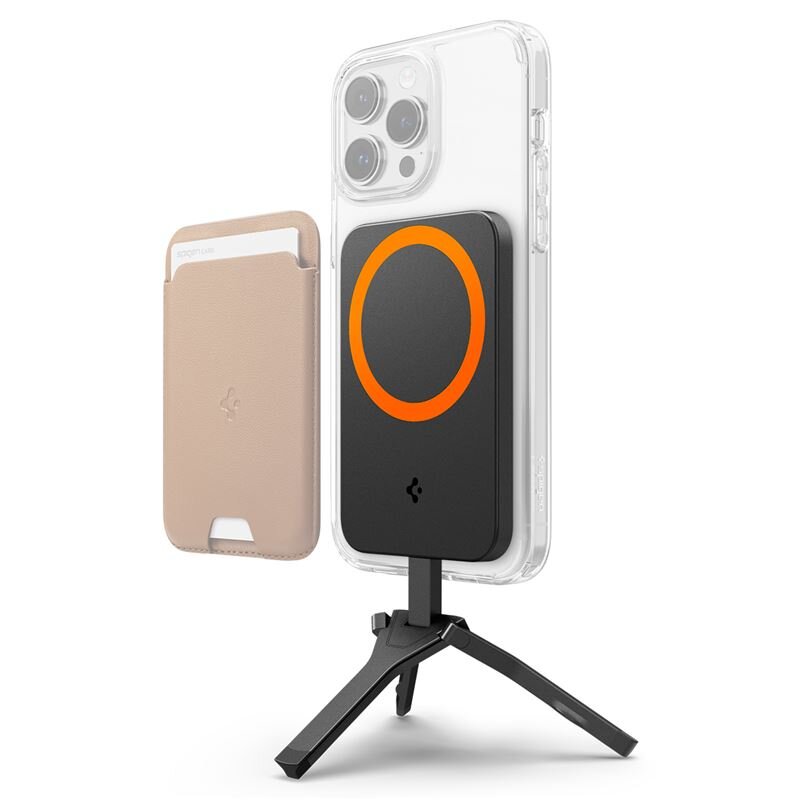Spigen Tripod Phone Stand MagSafe S319vyrobeno z prvotřídního PC, hliníku, ocelové desky, silikonové podložky a kovového kroužku pro větší odolnostprotiskluzové nastavitelné nožičky lze přeměnit na stativ, stojánek nebo úchyt pro natáčení a pořizování selfiessnadno přenosná konstrukce se skládá...