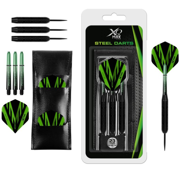 Šipky XQ MAX Steel Black Coated 23gSteelové brassové šipky Black Coated 23g s letkami XQ MAX v černo-zeleném designu. Součástí balení je i pouzdro viz. foto.Technický popis:- Výrobce: XQ MAX Darts- Motiv: Černo-zelený XQ MAX- Hmotnost šipky: 23 g- Šipky: Steel black coated- Letky: XQ MAX- Sada 3... przeczytaj całość