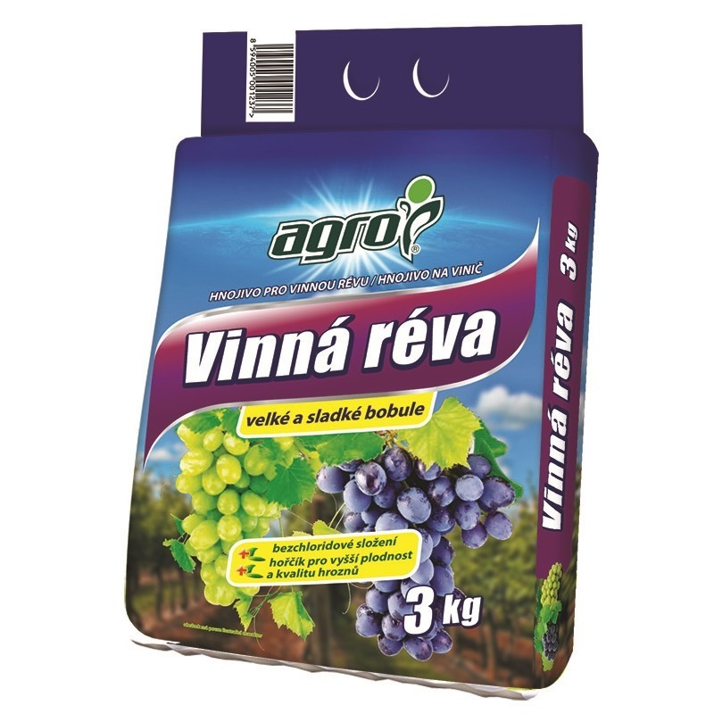 Agro HNOJIVO PRO VINNOU RÉVU díky optimálnímu poměru živin splňuje požadavky pro zdravý vývoj a silný růst révy, bohatou plodnost a vysokou kvalitu hroznů. Je to hnojivo s nízkým obsahem chlóru. Lze ho použít i ke hnojení všech ostatních rostlin. Vyšší obsah hořčíku zajišťuje zdravé zelené listy....