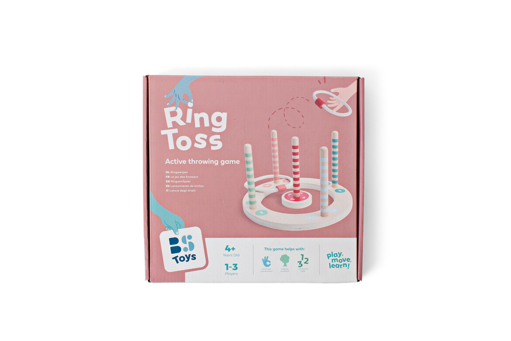 Zábavná motorická hra pro všechny věkové kategorie se hodí pro domácí i venkovní využití. Cílem hry je házet kruhy na stojánek a získat co nejvíce bodů. Vyšší počet bodů získáváte, pokud se vám podaří hodit kruh na prostřední hrot. Obtížnost hry můžete zvyšovat vzdáleností hráčů od stojánku....