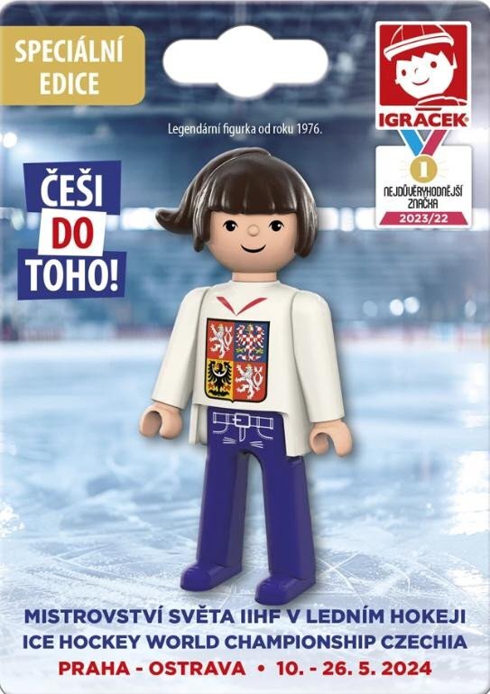 Speciální edice postaviček Igráčků vydaná u příležitosti Mistrovství světa v hokeji 2024 konaném v České republice. Figurka s originálním potiskem velkého státního znaku na hrudi a nápisem „Češi do toho“ na zádech. Vyrobeno v ČR. przeczytaj całość