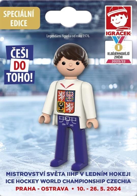 Speciální edice postaviček Igráčků vydaná u příležitosti Mistrovství světa v hokeji 2024 konaném v České republice. Figurka s originálním potiskem velkého státního znaku na hrudi a nápisem „Češi do toho“ na zádech. Vyrobeno v ČR. przeczytaj całość