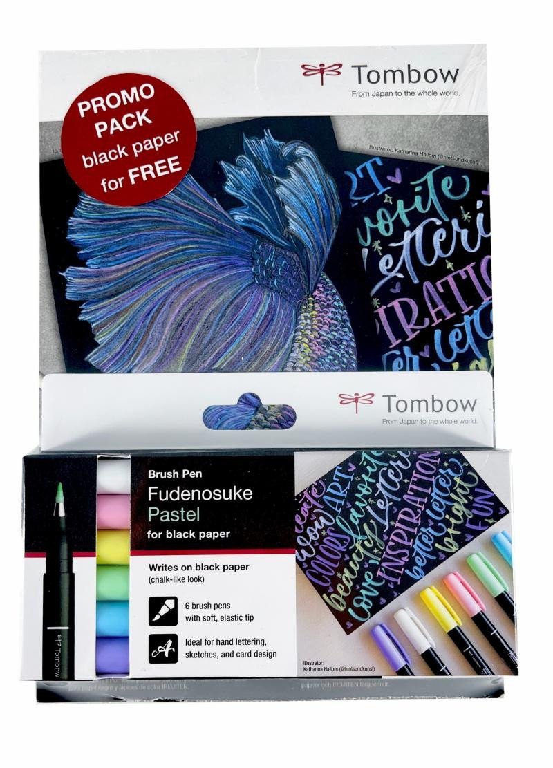 Výhodný balíček sady šesti štětcových fixů Fudenosuke pastel a bloku Tombow Black paper s patnácti listy černého papíru. Populární fixy Fudenosuke nyní dostupné také ve verzi vhodné pro psaní na černém a jiných tmavých papírech. Pevný, ale zároveň elastický štětcový hrot hravě zvládne tenké i...