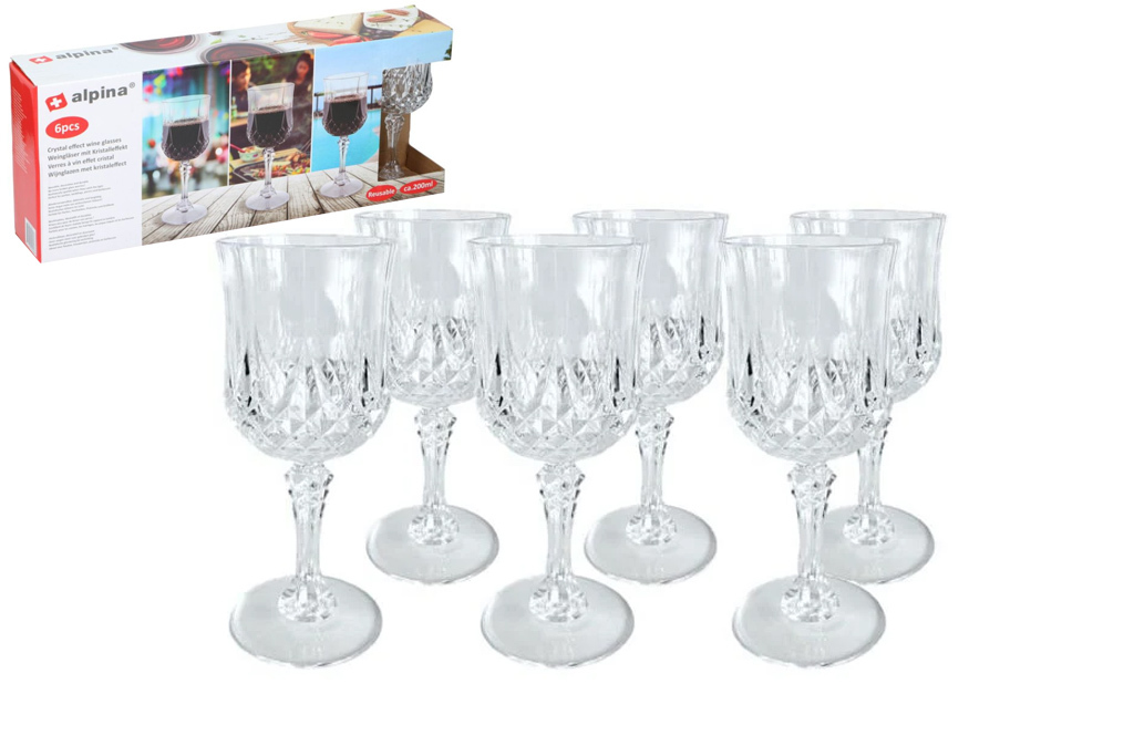 Specifikace sady sklenic na víno:Počet sklenic: 6Materiál: plastS křišťálovým efektemObjem na sklenici: 200 ml przeczytaj całość