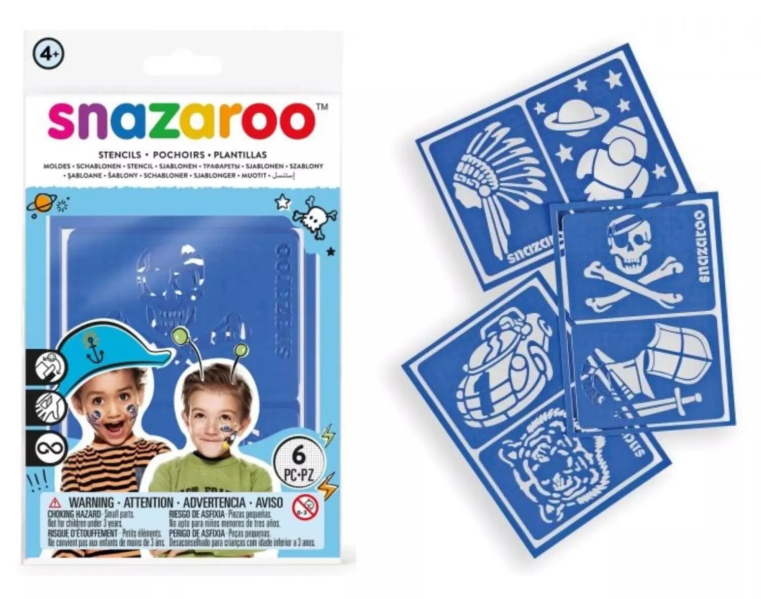 SNAZAROO Szablony do malowania twarzy - niebieskie to idealny dodatek do twoich kreatywnych zabaw i przyjęć. Dzięki nim szybko i łatwo wyczarujesz piękne niebieskie wzory, które przyciągną uwagę wszystkich wokół.