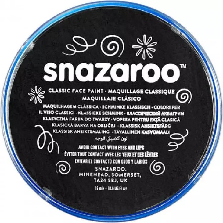 Farba do twarzy SNAZAROO w kolorze czarnym (Black) o pojemności 18 ml to doskonały wybór dla wszystkich, którzy chcą ożywić swój wygląd podczas karnawałów, imprez, przedstawień teatralnych lub innych okazji, gdy chcesz się wyróżnić.