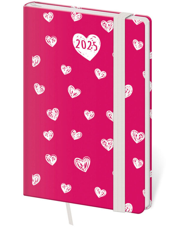 Diář 2025 Vario týdenní kapesní Hearts s gumičkou