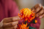 Kwitnące pąki - Zestaw LEGO® Icons Chryzantema z regulowanymi liśćmi i płatkami ma żywo pomarańczowe kwiaty w różnych fazach rozwoju, w tym 1 w pełnym rozkwicie, 1 w trakcie kwitnienia i 2 pąki