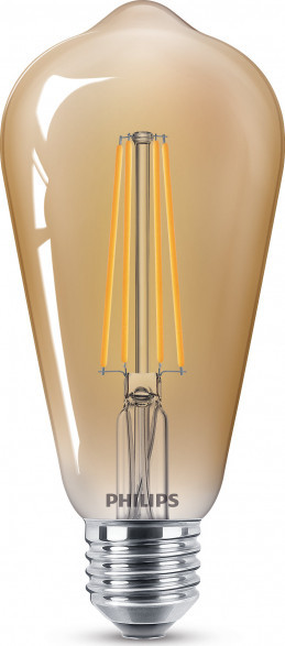 LED žárovka Philips řady Vintage s paticí E27 a tvarem baňky ST64 má stylový retro vzhled ve zlatavém provedení s hřejivým bílým světlem připomínajícím barvu plamenu svíčky s teplotou chromatičnosti 2200K. Navodí tak velmi příjemnou atmosféru v interiéru pro odpočinek a relaxaci. Navíc díky...