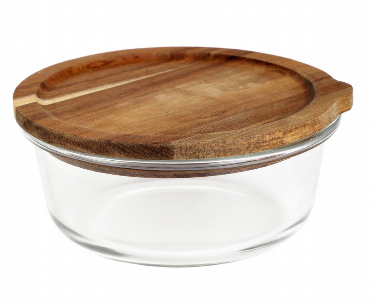 Skleněná dóza | MAIRA | sklo s akátovým víkem M | 15x7 cm | 890937 Homla