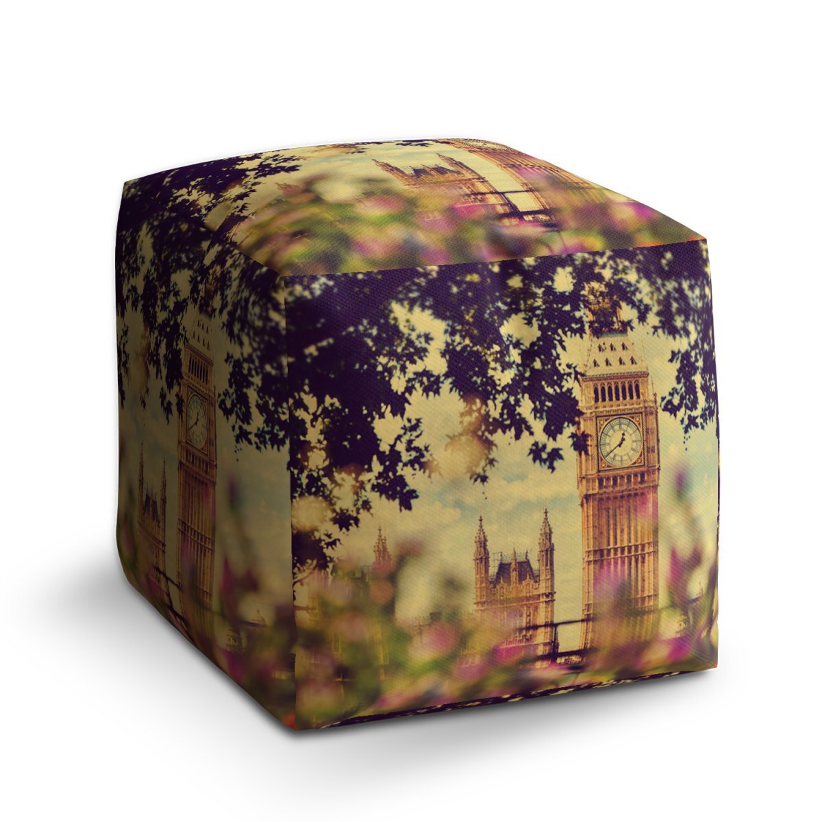 Taburet Cube Londýn Big Ben Flowers: 40x40x40 cm
