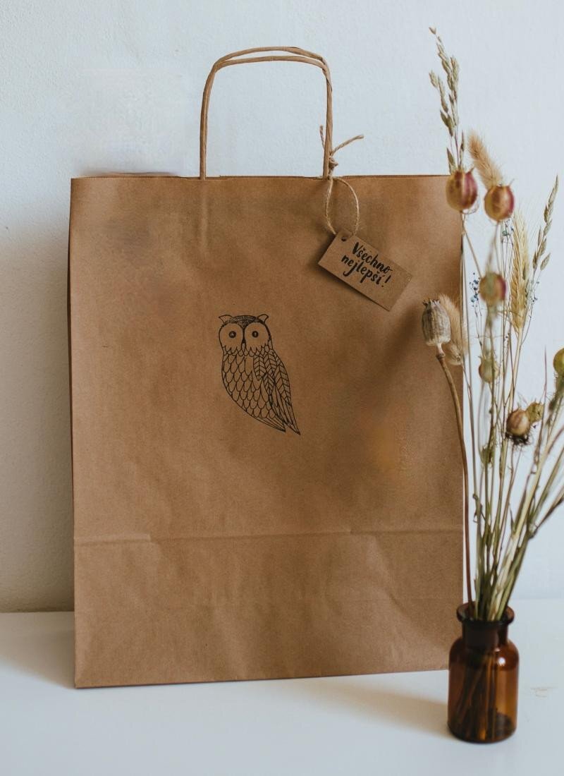 Be Nice přírodní dárková taška s motivem sovičky a ozdobnou jmenovkou. Rozměry 32 x 41 cm przeczytaj całość