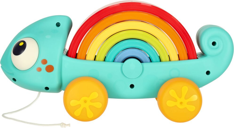Gra równowagi Tęczowy kameleon - montessoriańska drewniana zabawka na kółkach, która rozwija motorykę małą, zręczność i ćwiczy cierpliwość.