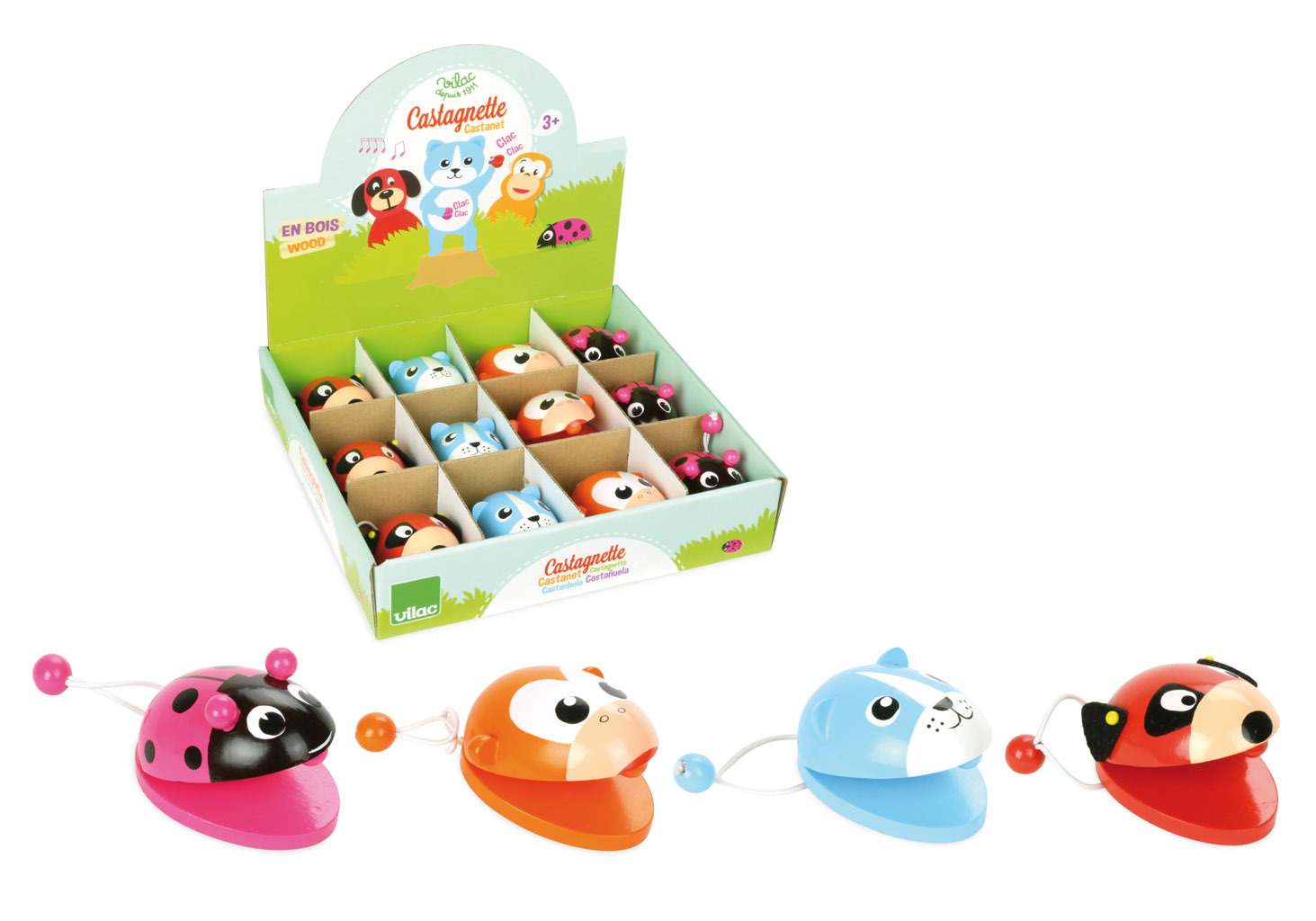 Zvířecí kastaněty – pes, kočka, beruška a opice. Cena je uvedena za 1 kus. Při objednávání můžete v připomínce objednávky požádat o konkrétní motiv, pokud je skladem, rádi Vám vyhovíme. V opačném případě zasíláme náhodně. Hračky Vilac mají značku francouzské agentury ADEME, to znamená, že tyto...