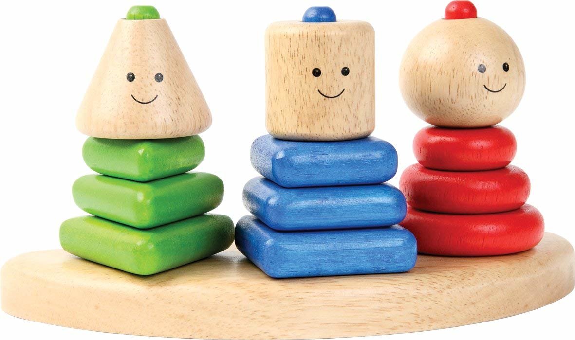 Tyto tři dřevěné postavičky jsou tvořeny ze třech různých geometrických tvarů (trojúhelník, čtverec, kruh), ze třech různých velikostí a třech barev. Vyskládejte je dle své fantazie na tři barevné tyčky. Děti se mohou při hře naučit rozeznávat velikostJedná se o nápadité vzdělávací dřevěné hračky...
